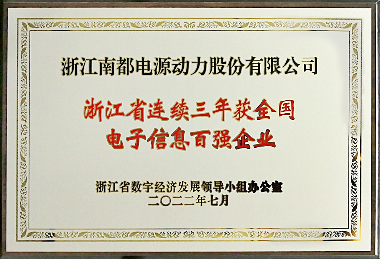 Zhejiang Digital Economy High Quality Development Conference was held in Hangzhou, and the Conference awarded the advanced units. As one of the key enterprises in the development of digital economy in Zhejiang Province, Narada Power was awarded as "National Top 100 Electronic Information Enterprises for three consecutive years in Zhejiang Province”. Mr.Zhu Baoyi, chairman and president of Narada Power, accepted the award.